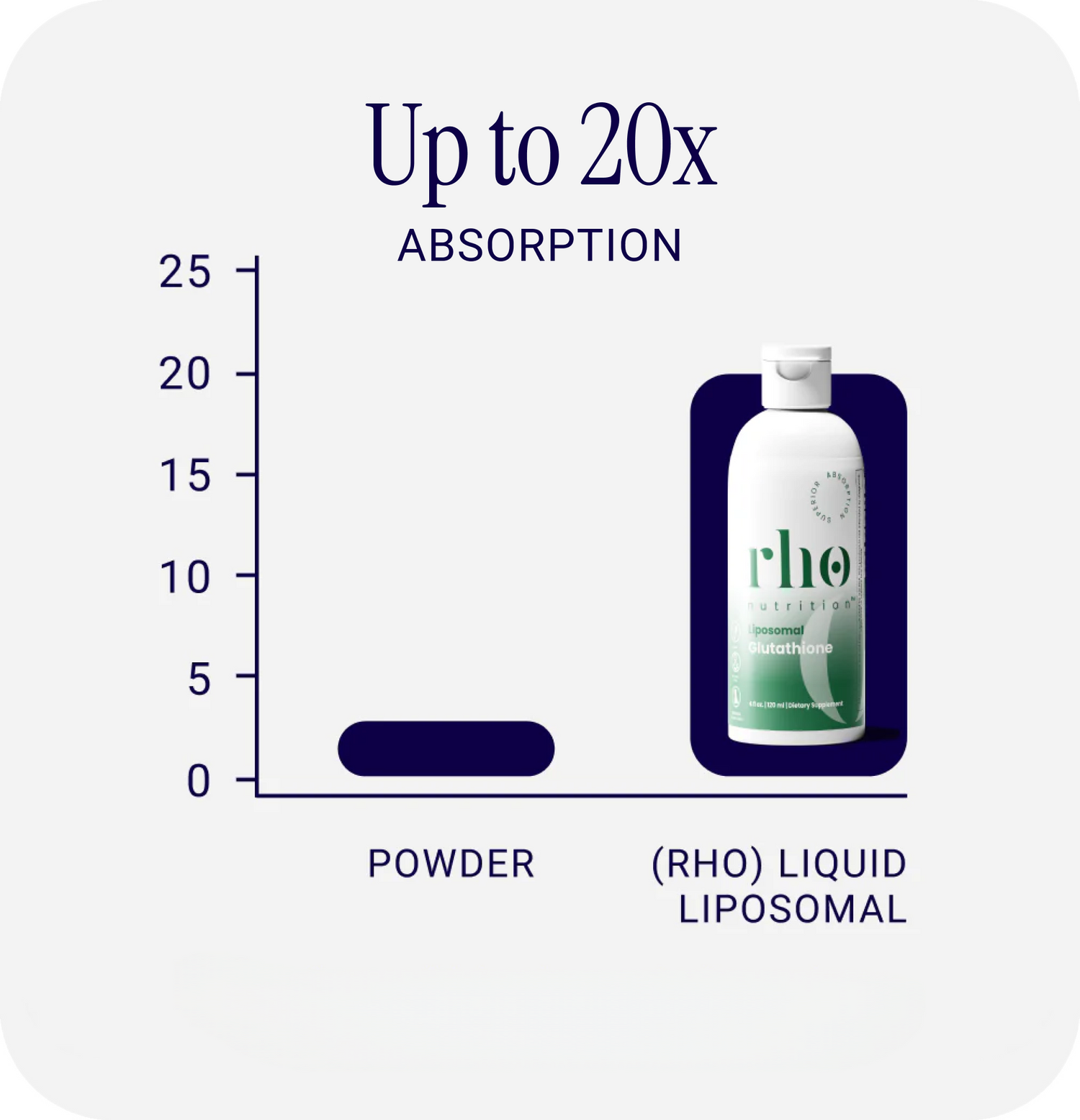 Rho's liquid liposomal glutathione has been shown in an open-label study tooffer up to 20x greater absorption into the bloodstream compared to non-liposomal powder forms, supporting more efficient nutrient delivery andavailability.